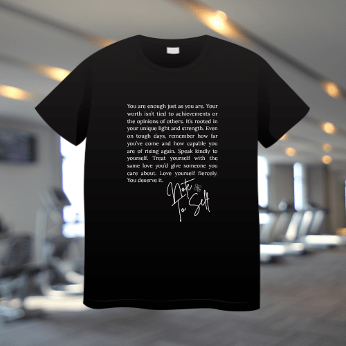 Show your strength with our athletic-fit t-shirt, boldly displaying “Note To Self”. Crafted with breathable fabric for workouts or everyday wear, this tee is your reminder to keep pushing forward—inside and out.