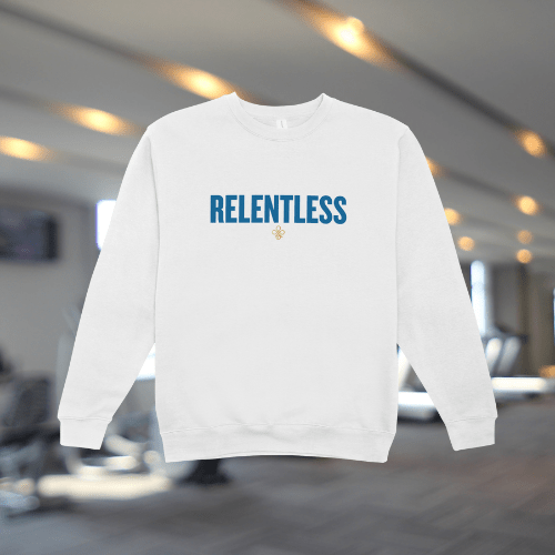 Comfort meets purpose with our classic crewneck sweatshirt, featuring the empowering “Relentless” design. Made for movement, lounging, or layering—this staple keeps you grounded in your goals wherever the day takes you.